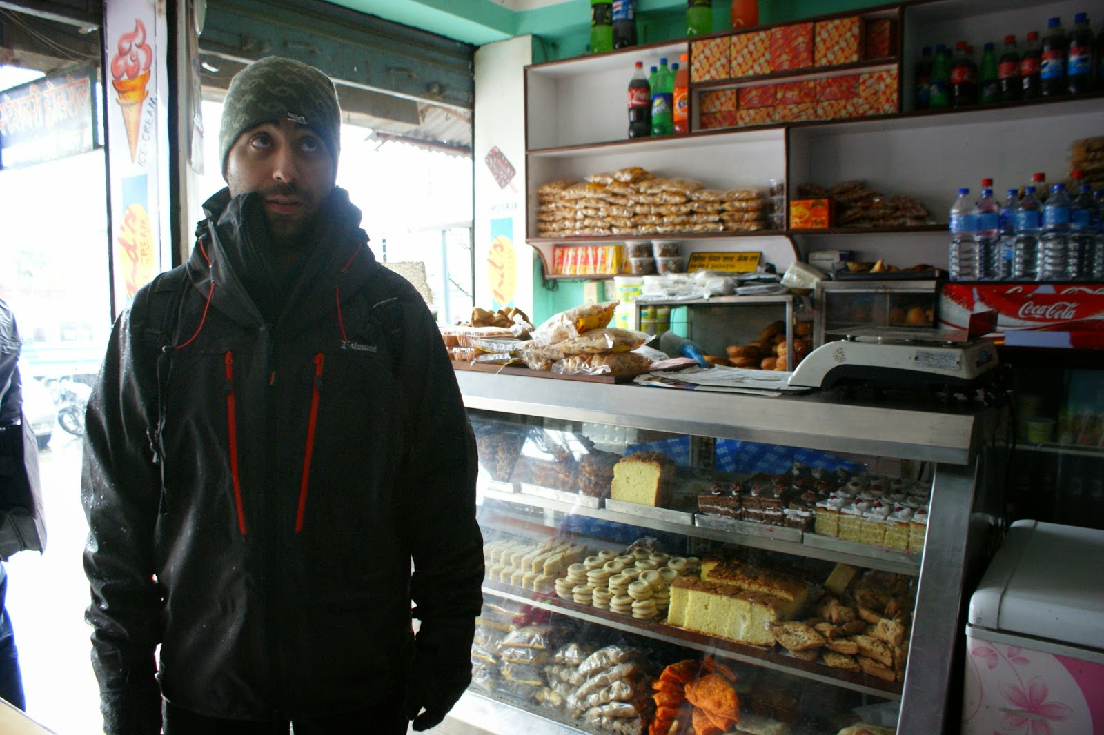 Bar ou o que se queira chamar em Katmandu com um amigo estudante que conhecemos no autocarro de regress a Katmandu...
